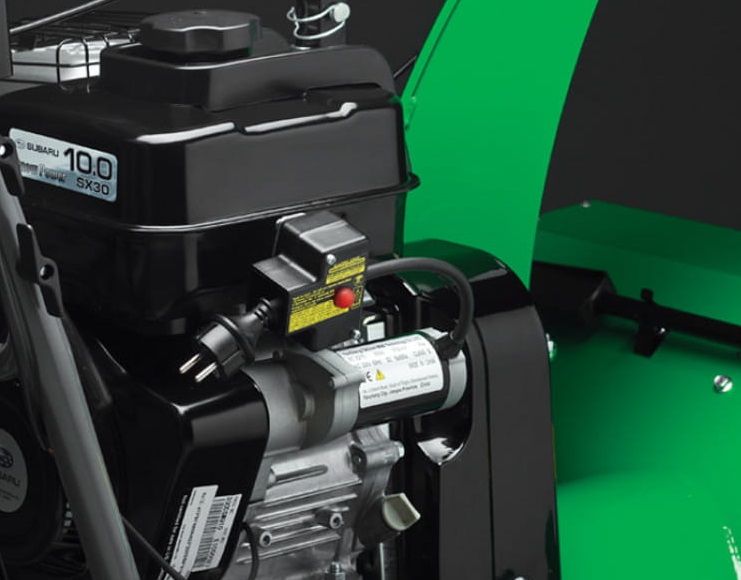 - На снегоуборщике установлен 4 тактный двигатель Subaru SX30. Мощность мотора составляет 9,5 л.с. с объемом 287 кубов. Двигатель оснащен цепным приводом газораспределительного механизма и другими необходимыми деталями, которые позволяют снегоуборочной машине справляться со своей работой качественнее и быстрее.