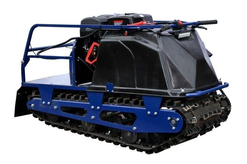 Мотобуксировщик Барс серии Следопыт F с 4-х тактным двигателем мощностью 15 л.с. Имеет ручной запуск и передний привод. Катковая подвеска с тремя тележками буксировщика. Следопыт исключает перегрев при движении, а гусеница шириной 500 мм. с высоким грунтозацепом для глубого снега имеет повышенную проходимость. Охлаждение воздушное принудительное.