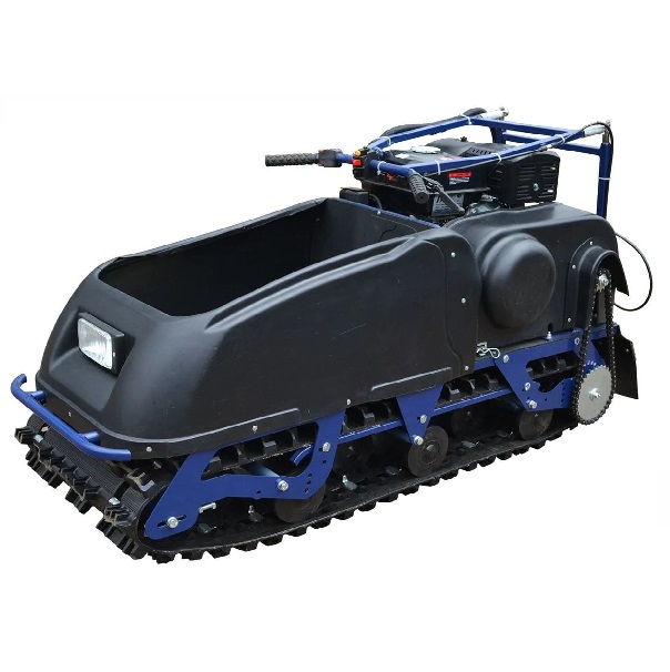 Модель оснащена гусеницей шириной 500 мм. Гусеница в сочетании с катковой подвеской способна проходить спокойно по льду и даже по территории без снега.