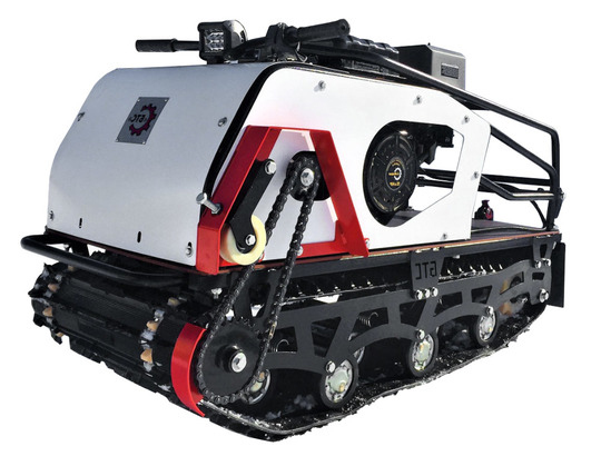 Модель оснащена гусеницей шириной 500 мм. Гусеница в сочетании с катковой подвеской способна проходить спокойно по льду и даже по территории без снега.
