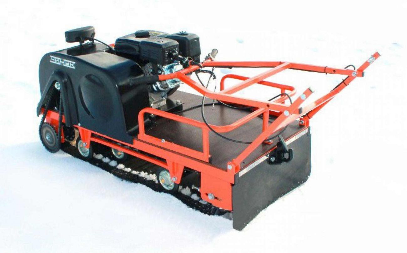 В конструкции мотовездехода используется цельная резиновая гусеница шириной 500 мм. Площадь опоры гусеницы улучшает тяговые характеристики, проходимость и устойчивость буксировщика.