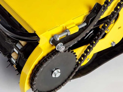 Модель оснащена гусеницей шириной 500 мм. Гусеница выполнена на основе прочного материала из резины с металлическими вставками для улучшения сцепления и износостойкости.