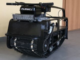 Мотобукс весит 60 кг, а размеры его составляют 120 см в длину, 60 см в ширину и 68 см в высоту. Модель оснащена гусеницей шириной 380 мм. Гусеница в сочетании с катковой подвеской способна проходить спокойно по льду и даже по территории без снега.