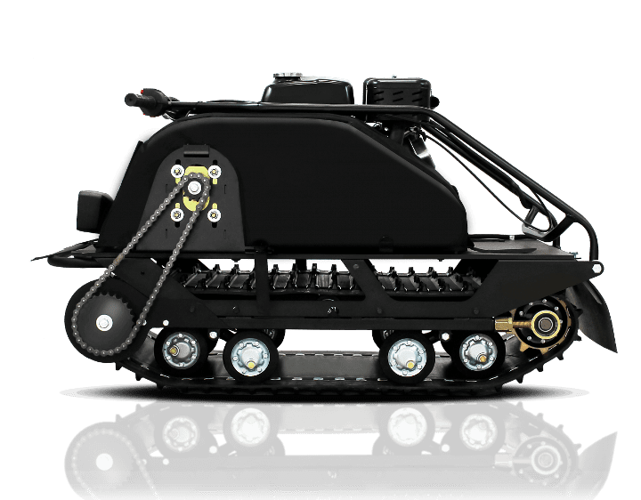 Мотособака оснащена специальной гусеницей Composit, которая обеспечивает отличное сцепление со снегом и со льдом благодаря своим техническим качествам, а также тракторным механизмом натяжения цепи.