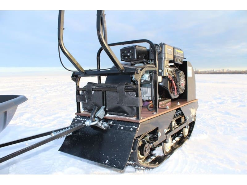 Мотобукс весит 78 кг, а размеры машины составляют 144 см в длину, 50 см в ширину и 66 см в высоту. Модель оснащена гусеницей с отличным сцеплением с поверхностью льда и снега шириной 380 мм. Гусеница в сочетании с катковой подвеской способна проходить спокойно по льду и даже по территории без снега.