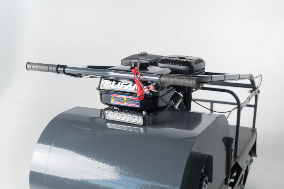 Катковая подвеска упрощена и не дает гусенице забиваться снегом. Также на данном мотобуксировщике установлены обрезиненные катки с сальниками и ведомая звезда, которая самоочищается от снега и льда. На мотобуксировщике также установлена настраиваемая рукоятка, регулируемая по высоте в зависимости от роста водителя.