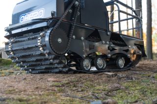 Мотобукс весит 91 кг, а размеры машины составляют 144 см в длину, 50 см в ширину и 60 см в высоту. Модель оснащена гусеницей с отличным сцеплением с поверхностью льда и снега шириной 500 мм. Гусеница в сочетании с катковой подвеской способна проходить спокойно по льду и даже по территории без снега.