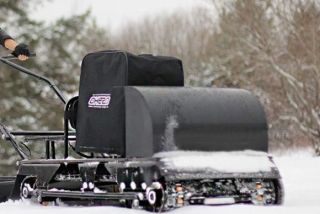 Мотобукс весит 80 кг, а размеры машины составляют 120 см в длину, 55 см в ширину и 72 см в высоту. Модель оснащена гусеницей с отличным сцеплением с поверхностью льда и снега шириной 550 мм. Гусеница в сочетании с катковой подвеской способна проходить спокойно по льду и даже по территории без снега.