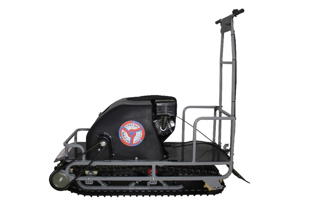 Буксировщик производится с компактной задней площадкой для перевозки личных вещей, инструментов, рыбацких снастей и прочих необходимых мелочей охотнику или рыбаку. Техника оснащена яркой фарой, которая позволяет пользоваться транспортом даже в темное время суток. Морозо- и вибростойкий капот с чехлом карбюратора и пластинами утепления - максимально защищает ДВС от обледенения и от возможности лопнуть.