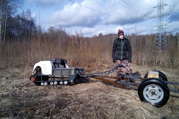 Мотособака весит 50 кг, а размер ее составляет 102 см в длину, 45 см в ширину и 77 см в высоту. Благодаря своим компактным размерам и легкому весу, мотобуксировщик способен поместиться в багажник легкового автомобиля. Управление не требует особых усилий, поэтому справиться с ним можно даже если у вас нет опыта.