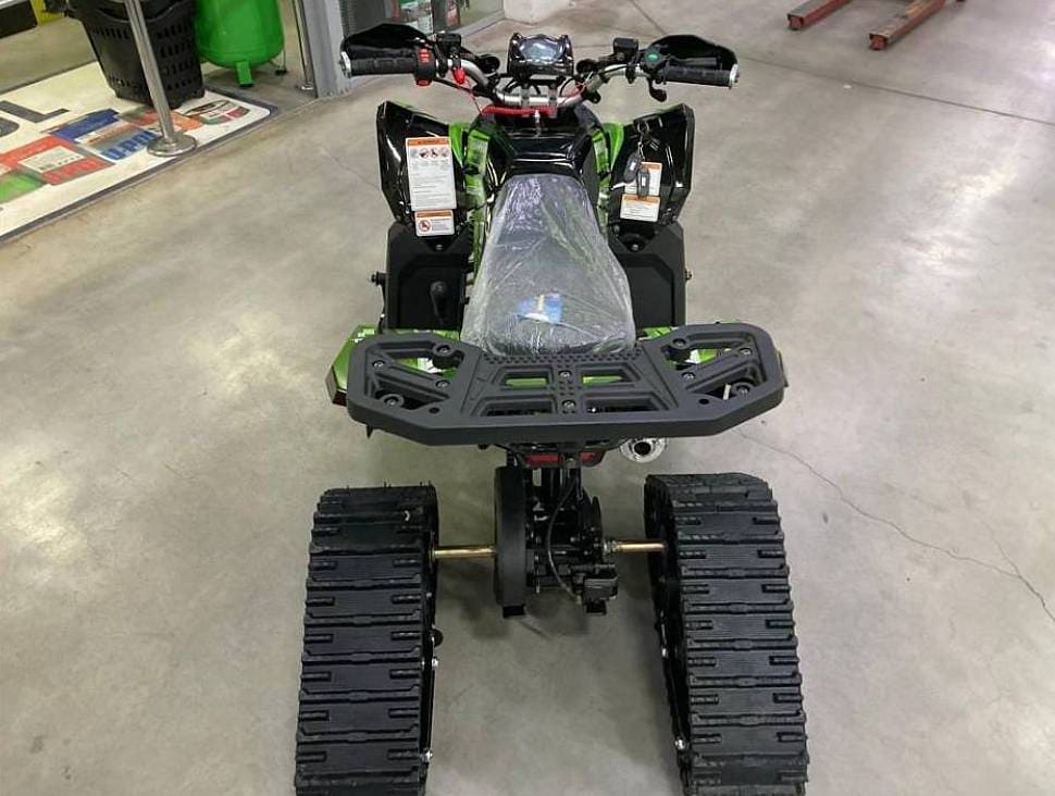 - В комплекте колеса и передние тормозные механизмы, что позволяет использовать снегоход круглый год на различных покрытиях (как на снегу, так и на асфальте).