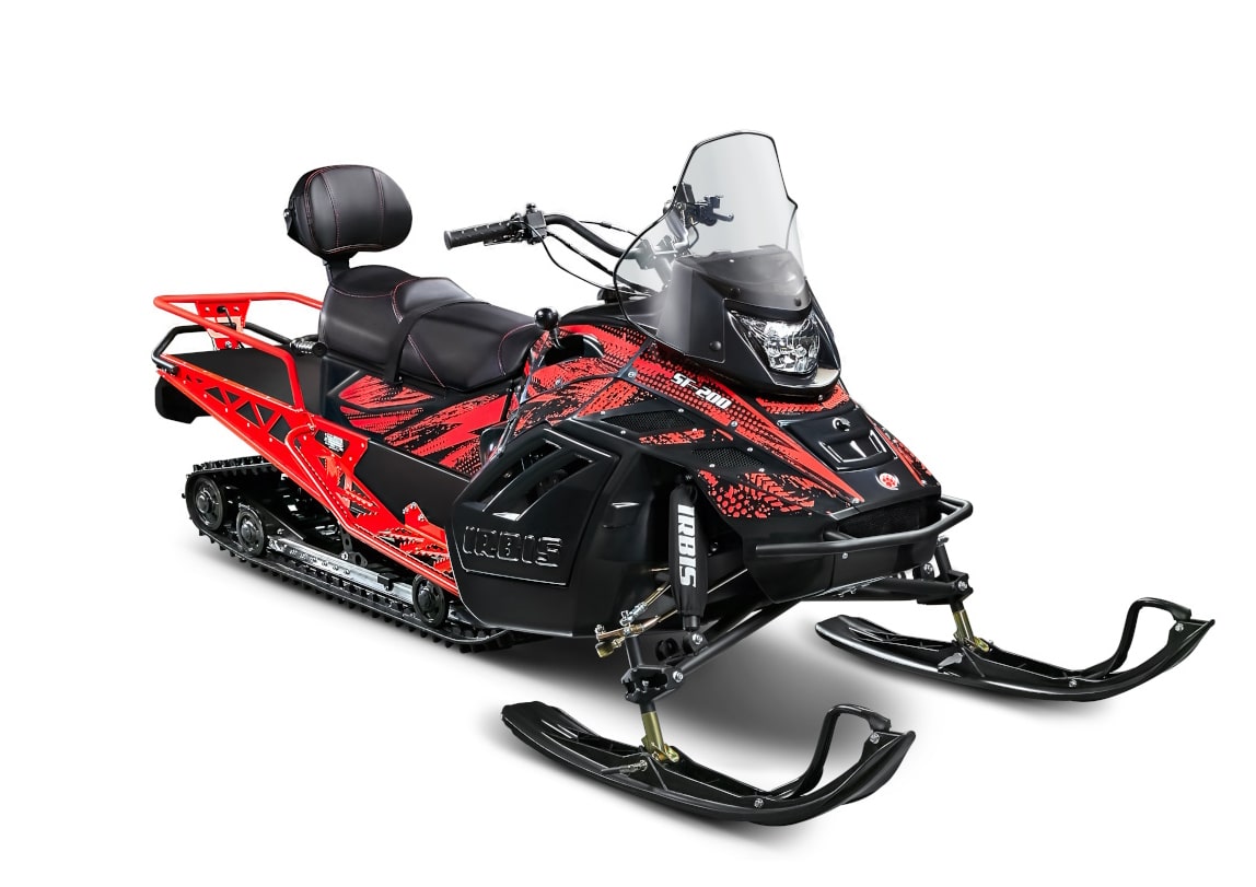 Снегоход SF200SL имеет современный дизайн и компоновку. Элементы конструкции спроектированы таким образом, что бы обеспечить комфортное передвижение по любому снежному покрытию. Подогрев ручек и курка газа, USB-розетка, панель приборов со всей необходимой информацией, электрозапуск двигателя и ручной запуск. Широкие и длинные подножки, закапотированный двигатель, двухместное сиденье, спинка для пассажира, позволяют удобно расположиться водителю и пассажиру на снегоходе. Проверенный годами эксплуатации, двигатель 180 куб.см, через клиноременный вариатор разгоняет снегоход свыше 50 км в час. Независимая передняя подвеска позволяет легко маневрировать и держать уверенно курс. В наличие задний ход.На снегоходе установленная удлиненная гусеница 3434 мм, специально созданная российским заводом «Композит». Гусеничный блок с обрезиненными катками и алюминиевыми закаленными склизами. Задняя подвеска с регулируемым ходом и жесткостью. Рама и тоннель гусеничного блока изготовлен из стали 1.5 мм с усиливающими накладками в местах наибольших нагрузок