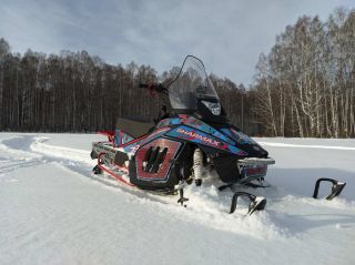 Классический катково-склизовый гусеничный блок снегохода в сочетании с четырьмя амортизаторами обеспечивают комфортную езду на любом покрытии. Длинная и широкая гусеница с грунтозацепом 19 мм создает большое пятно соприкосновения с поверхностью и значительно увеличивает проходимость снегохода.