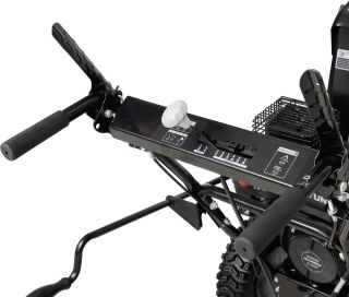 Эта модель снегоуборочной техники демонстрирует эффективность при работе с плотным и свежим снегом. Она также оснащена специальными рычагами на панели управления, которые позволяют регулировать высоту и направление выброса снега. Основные преимущества модели: