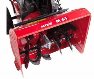 Снегоуборщик MTD M61 - отличная и недорогая снегоуборочная машина. Оснащена приводом на колеса со специальными покрышками, протектор которых не позволяет скользить даже на льду. Колёсный снегоуборщик MTD M61 лёгок и прост в управлении, имеет стильный дизайн. Оснащается прочным пластиковым желобом для выброса снега, поворачиваемым на 180°. Направление и дальность выброса снега устанавливается вручную и обеспечивают точный выброс снега в любом направлении. Имеет усиленный зубчатый шнек обеспечивает наиболее эффективное измельчение наледи и слежавшегося снега. Шнек аккуратно захватывает снег, счищая его с асфальта или мощеной дорожки. Модель самоходная: 5 передних скоростей и 2 задние. Снегоуборщик mtd 61 имеет крупные элементы управления, которыми легко оперировать даже в перчатках. Управление приводом на колеса и приводом шнека находятся на правой и левой рукоятке соответственно.