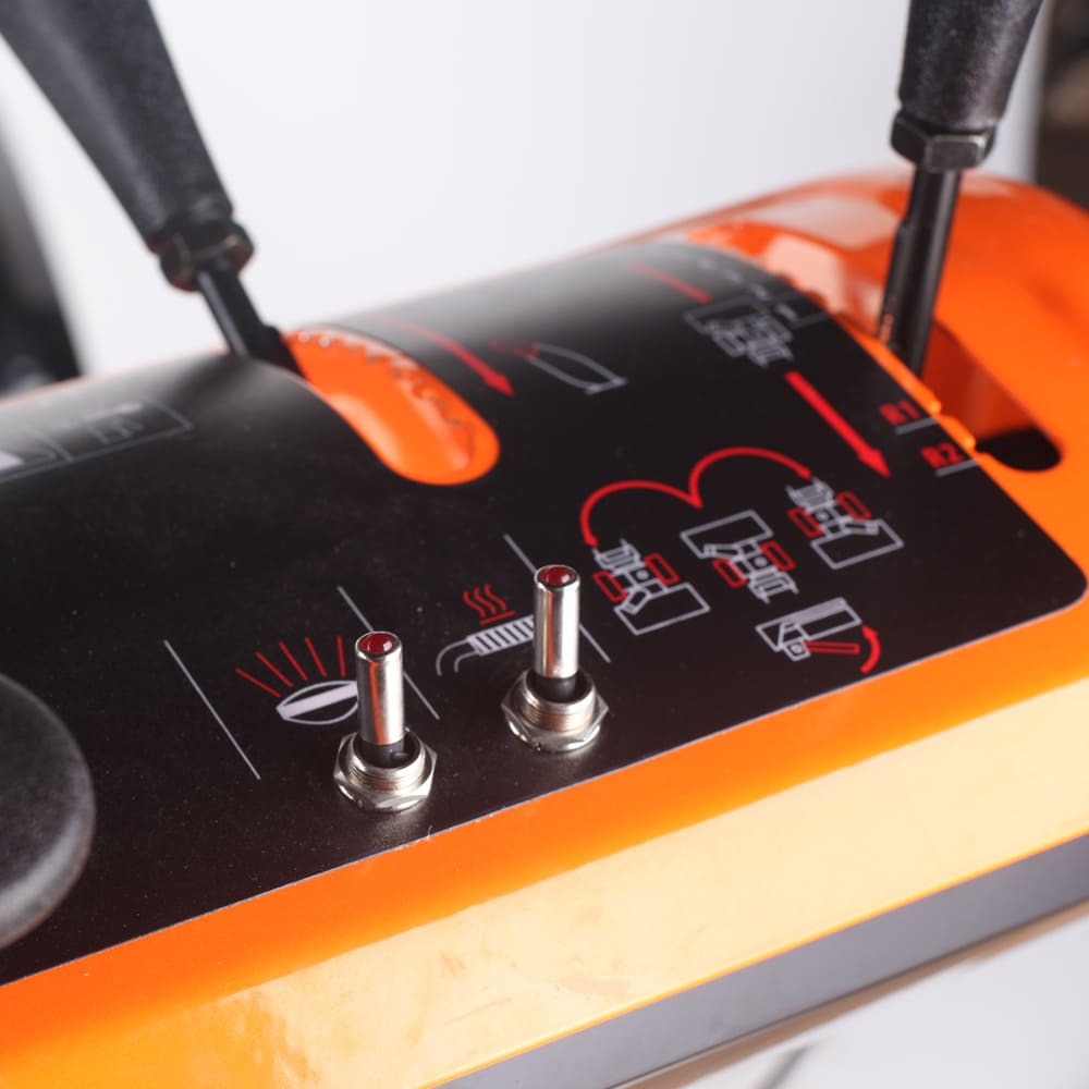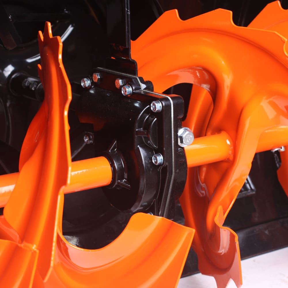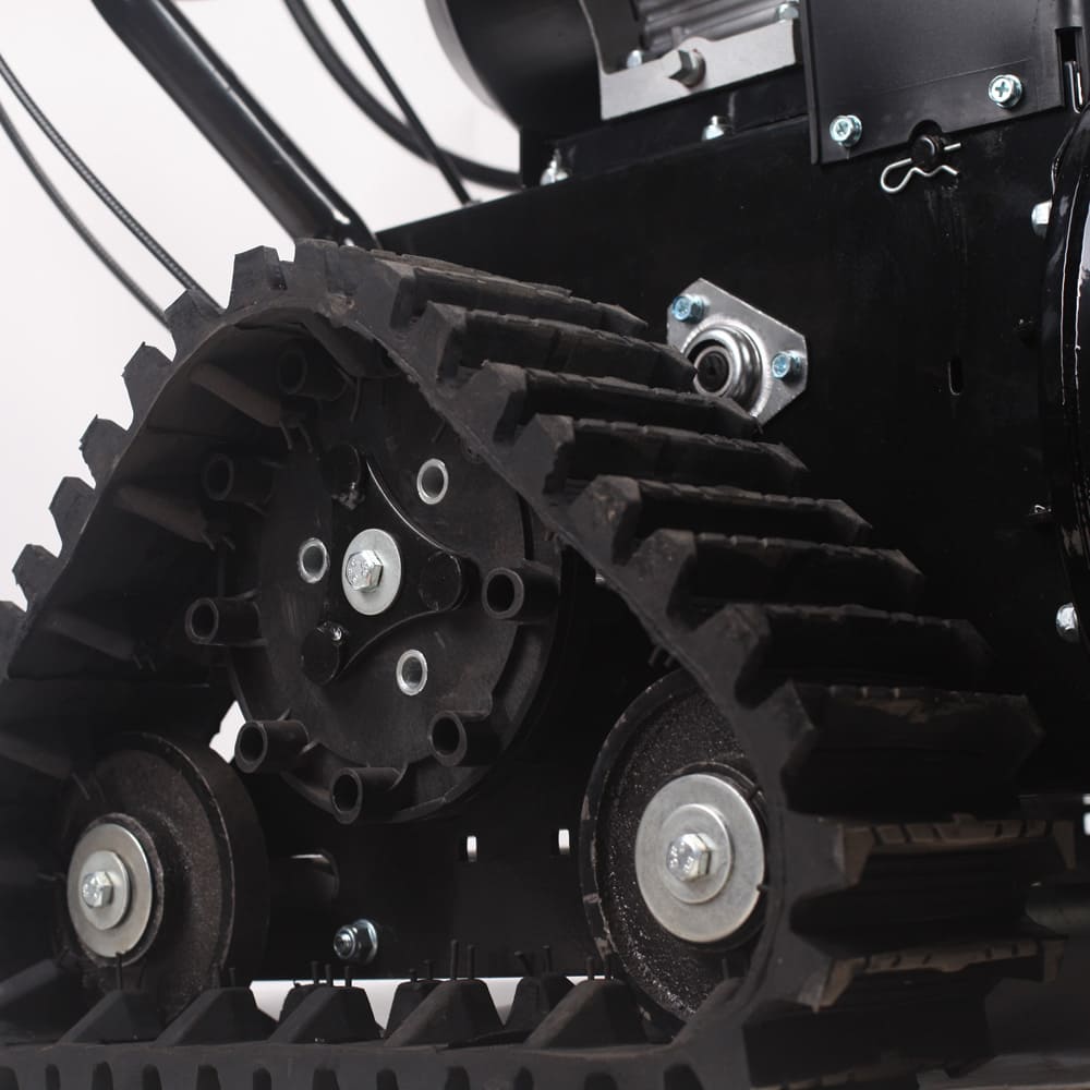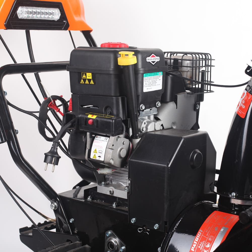 Электрическое устройство пуска и ручной стартёр осуществляет легкий запуск машины в экстремальных условиях. Наличие галогеновой лампы позволяет продолжить работу при плохой видимости. Зубчатый стальной шнек, состоящий из независимых четырех спиралей эффективно измельчает слежавшийся снег и наледь и не прекращает работу при поломке одной из спиралей. Для удобства работы предусмотрено регулирование дальности и угла выброса снега.
