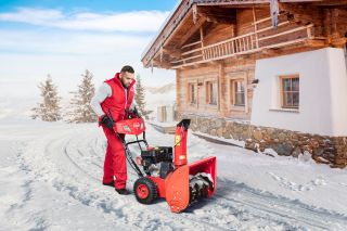 - Металлический шнек. Снегоуборочная машина оснащена специальным шнеком с зубчиками, который позволяет справиться даже с залежавшимся снегом на большой и маленькой территории. Обладает многоступенчатой системой очистки.