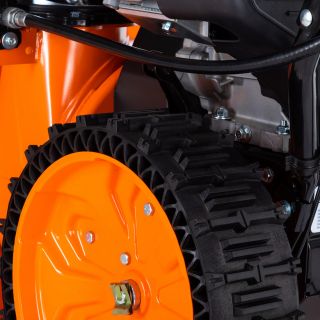 На Kettama 150S также установлены безвоздушные шины SnowLink с технологией Runflat. Эти шины с глубоким протектором исключают пробуксовку агрегата на обледенелом участке. Увеличенное сцепление даёт возможность достичь показателей производительности практически равных гусеничному шасси. При этом, более низкий общий вес снегоуборщика позволяет достигать на этой модели показателей производительности до 10-12 т/ч с влажным лежалым снегом плотностью до 550-600 кг/м3. На свежевыпавшем влажном снегу плотностью до 200-250 кг/м3 этот снегоуборщик имеет производительность до 20 т/ч. Шины Runflat позволяют достигать высокого сцепления и производительности даже во время поворотов. Удобство и эффективность управления на этой модели обеспечивается наличием дифференциальной системы.
