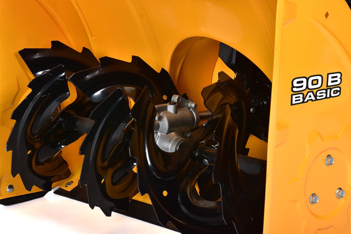 Все конструктивные решения и качество материалов направлены на увеличение срока службы снегоуборщика. Например, оси колёс и шнека подвешены не на втулках, а на подшипниках. Большинство пластиковых элементов заменены на металлические. Дефлектор из усиленного металла даёт возможность менять направление выброса снега на 190 градусов при помощи рукоятки на корпусе машины, позволяя длительное время непрерывно заниматься уборкой практически всех типов снега. Стальной агрессивный шнек с добавлением хромомолибденового сплава позволяет эффективно справляться даже со слежавшимся снегом с элементами глетчерного льда.