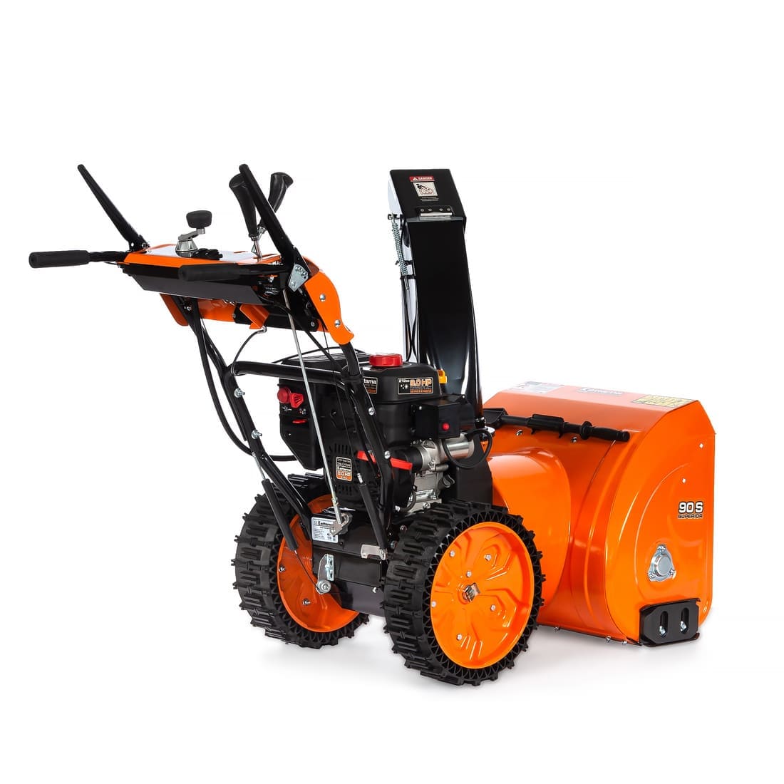 Возможность эффективно перерабатывать снег практически любого типа сложности связана с конструкторским решением сочетания высокой мощности (8,5 л.с.), небольшой ширины уборки (663 мм) и усиленным сцеплением 14-дюймовых безвоздушных шин Runflat. Небольшая ширина ковша, даёт возможность эксплуатировать эту технику на любом приусадебном участке с узкими дорожками. Повышенная высота уборки (540 мм) по сравнению с моделью 80S (510 мм) позволяет применять эту технику при работе с более высоким снегом. Однако это же создаёт определенные ограничения в работе с лежалым снегом с элементами сухого фирна. Рекомендуемый  тип снега для 90S для эффективной уборки не должен превышать плотность 400 кг/м3. Дефлектор из усиленного металла позволяет менять направление выброса снега на 190 градусов при помощи рукоятки на корпусе машины. Стальной агрессивный шнек с добавлением хромомолибденового сплава позволяет эффективно справляться даже со слежавшимся снегом.