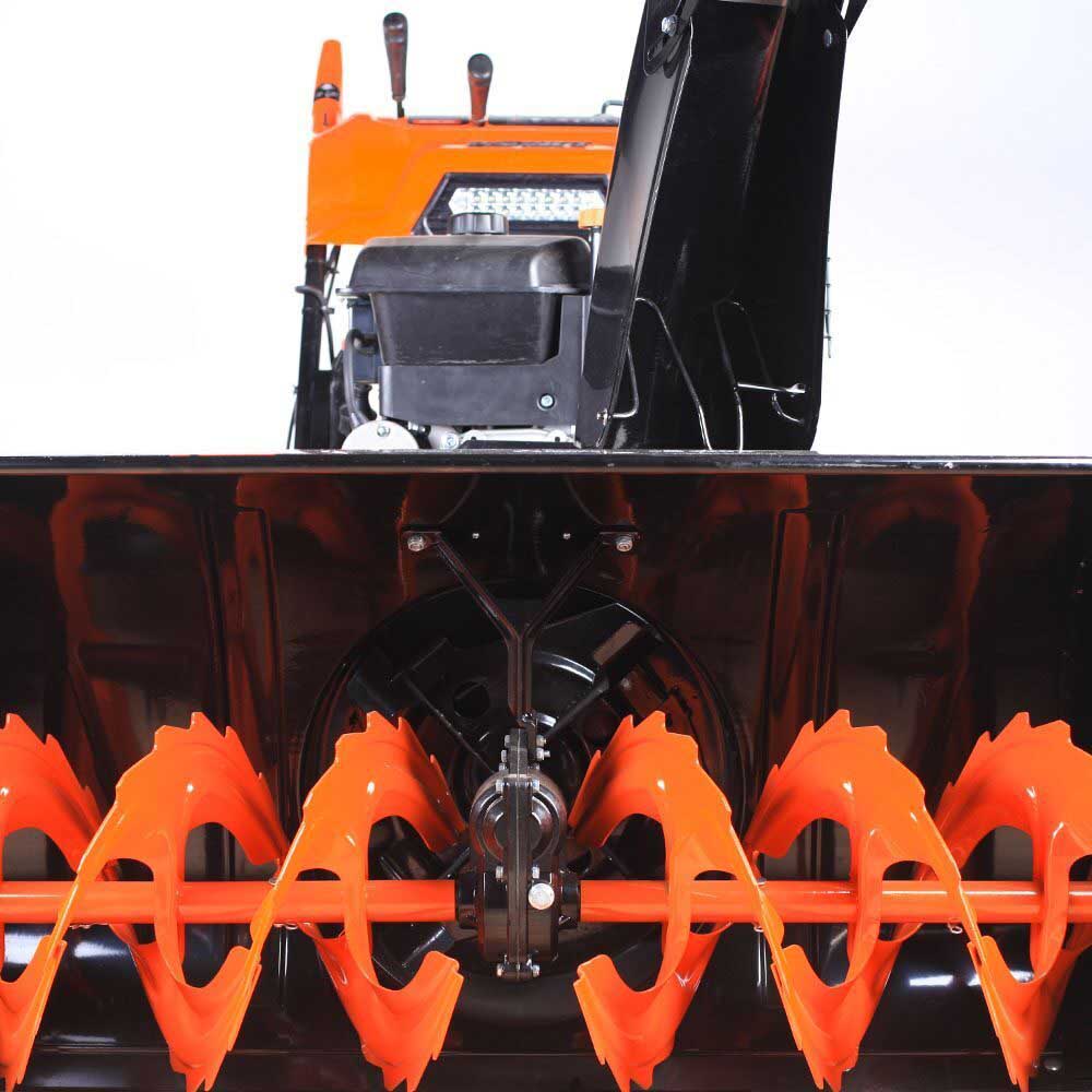 В конструкции снегоуборщика используются только подшипники, а не втулки. Шестерня редуктора шнека выполнена из бронзы, что в десятки раз увеличивает ресурс снегоуборщика. На заводе производится регулировка и обкатка каждой единицы техники в собранном состоянии.Этому снегоуборщику под силу работа на очень больших площадях, например, на стадионах.