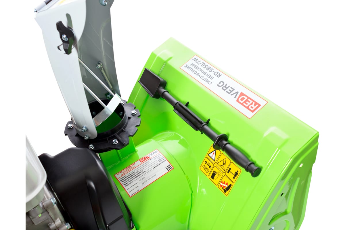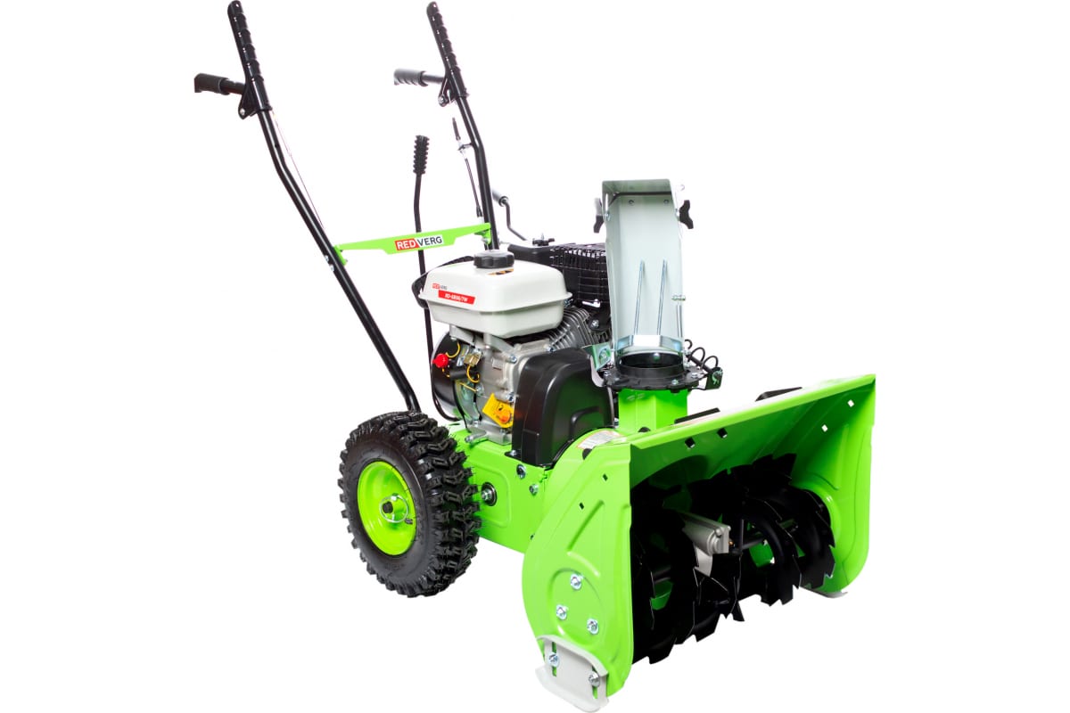 Самоходный снегоуборщик РедВерг оснащен бензиновым двигателем с воздушным охлаждением мощностью 7 лошадиных сил. Вместе с колесами с глубоким протектором, снегоуборочная техника легко перемещается, так как колеса предотвращают пробуксовку на обледенелых участках. Модель также оснащена датчиком уровня масла.